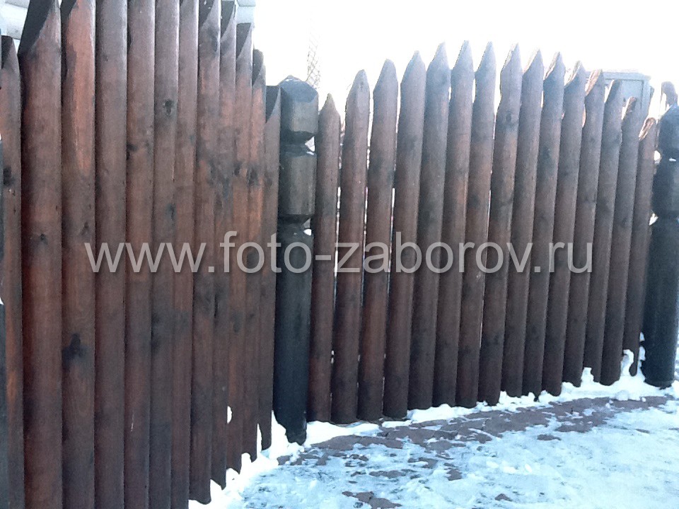 Деревянный бревенчатый частокол с фигурными столбами для частного бревенчатого дома.