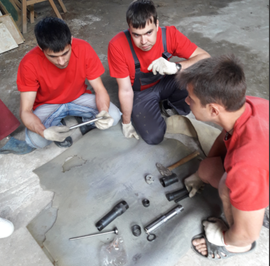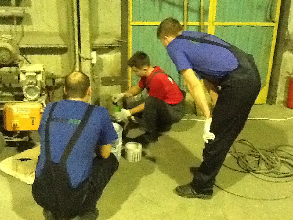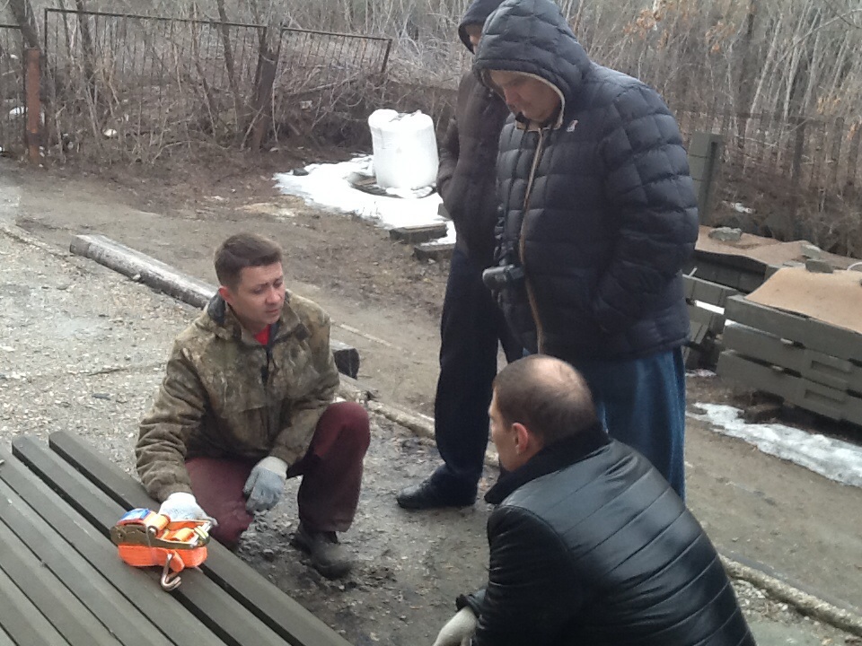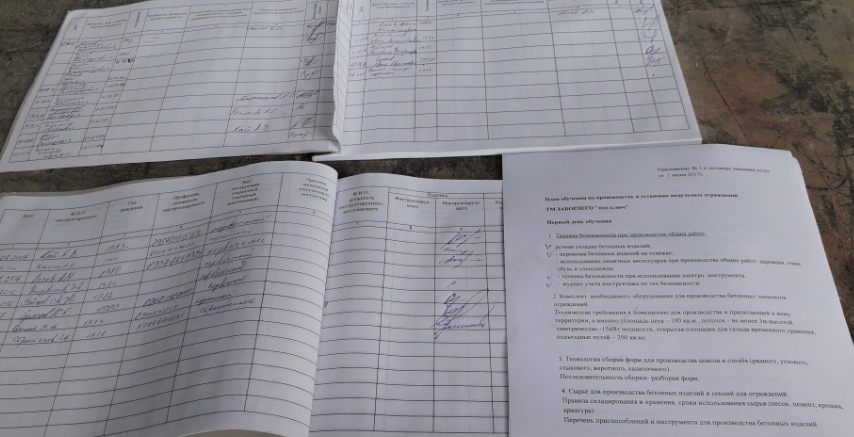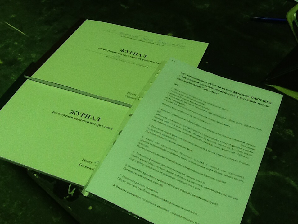 В соответствии с курсом обучения, расписанным по дням, все действия в цеху начинаются с вводного курса инструктажа по технике безопасности и росписи инструктируемых в журналах по технике безопасности. Это закон. Приехавшая бригада на курс обучения с Владимиром из Воронежа имеет серьёзный настрой на плодотворную работу по обучению.