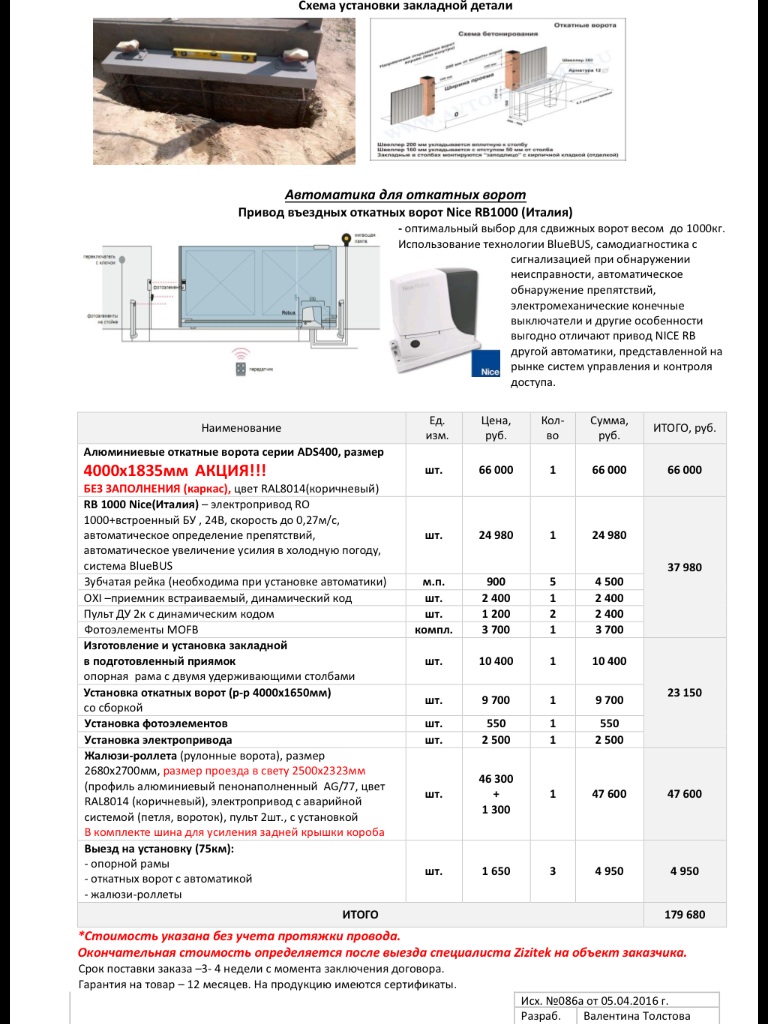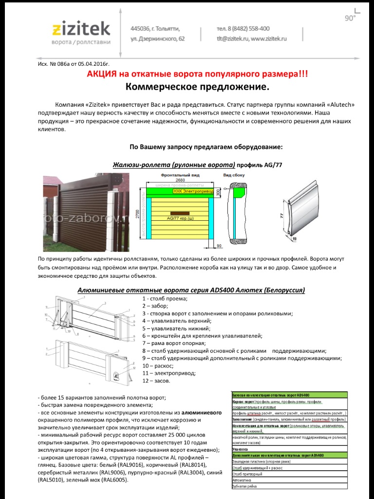 А вот пример тесного сотрудничества с дилером Алютех. Пока ехали с гостей до цеха, Валентина прислала нам коммерческое предложение на запрашиваемый тип ворот моим заказчиком этого года.