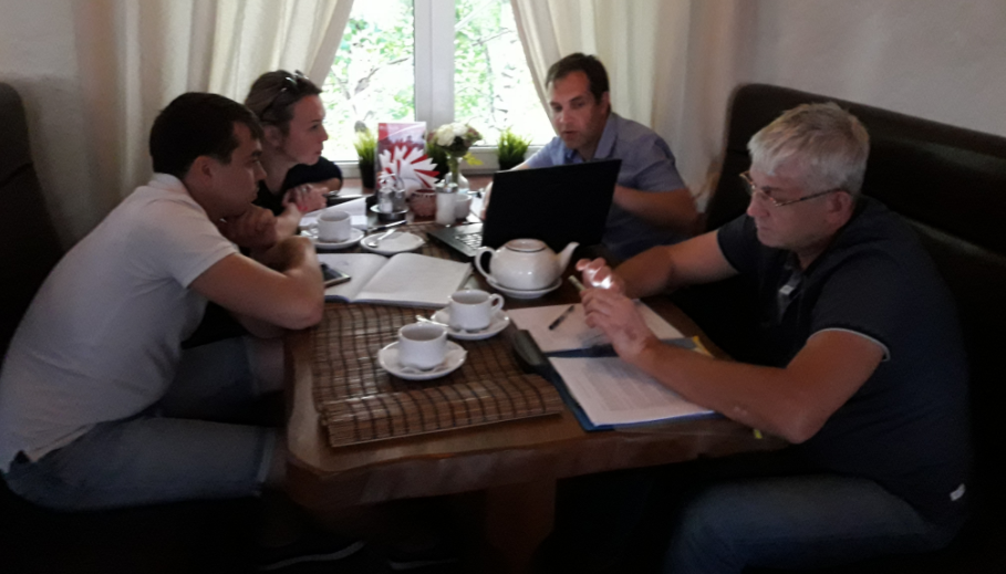Дни в течении рабочей смены мы с новыми франчайзи проводим в цехе, постигая практические навыки в производстве элементов модульных ограждений, а вечером после небольшого отдыха едем в уютное кафе для знакомства с курсом маркетинга, операционной деятельности, менеджмента и финансов. Сегодня рисовали картину мира всего бизнес-процесса в целом, начиная от звонка потенциального клиента до составления сметы, техзадания, карты высот и самого договора.