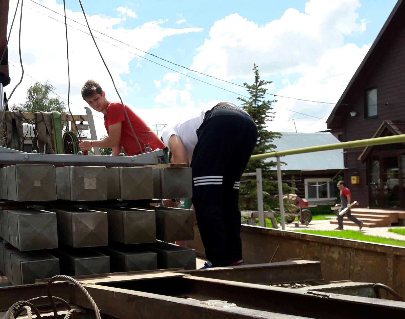 На утро следующего дня все произведенные цоколя двумя бригадами франчайзи были подняты с форм на тележки и загружены в прицеп для практики понимания, каким "макаром" они крепятся с возможностью дальней перевозки. И такое часто бывает. Это мелочь по большому счету, но именно она не даст вовремя сдать заказа.