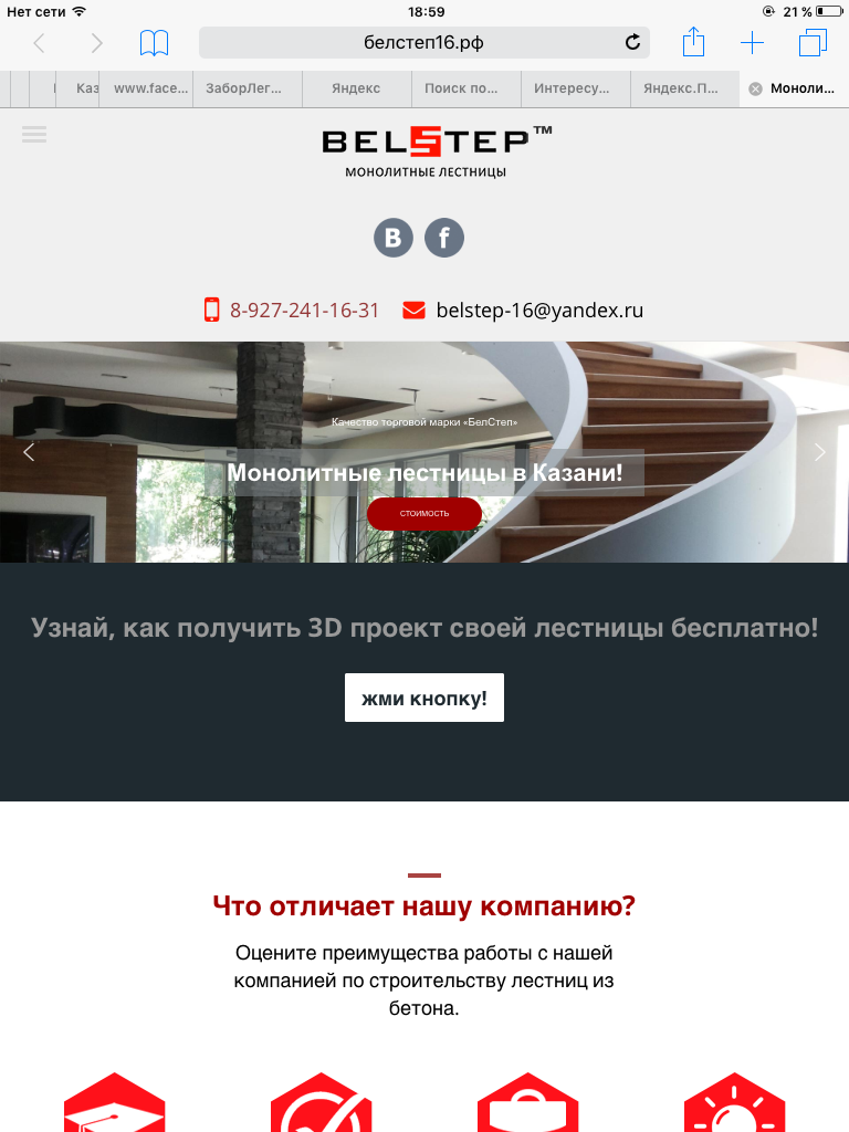 Эльвира, повторюсь в своём вопросе, вы ездили на сложный замер. Уверенность в правиле замера после многократных повторений расчета стоимости лестницы и замере появилась? Мне важен ваш ответ не только с позиции обратной связи, но и с позиции, что наш форум читают много заинтересованных лиц, рассматривая вариант открытия своего представительства в своём городе. Ведь понимание актуальности курса обучения идёт не от меня, я такое вам расскажу))) Понимание курса обучения идёт от вас реального партнера. Ваша правда самая самая. И верят по большому счёту той обратной связи которую опишите вы. Так со вчерашнего дня заработал контекст по сайту БЕЛСТЕП В Казани и Эльвира готова принимать звонки и согласовывать дату замера. А её команда практически готова к строительству монолитных лестниц.