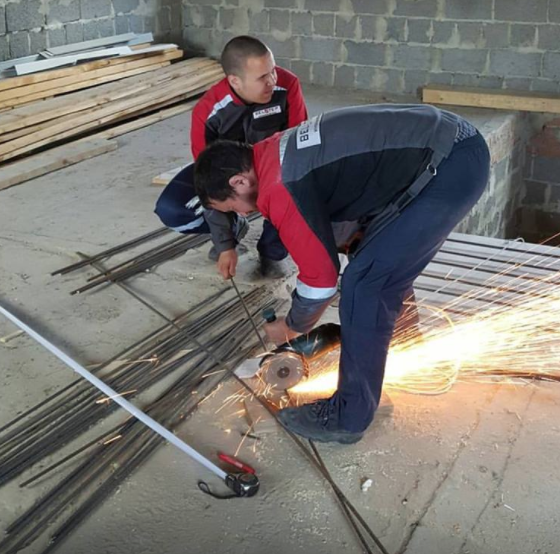 Сегодня четвёртый день обучения практической части занятий.С 8 утра мы на объекте, наша лестница стала приобретать форму.К концу дня дособирают каркас .Следующий этап вязка арматуры.