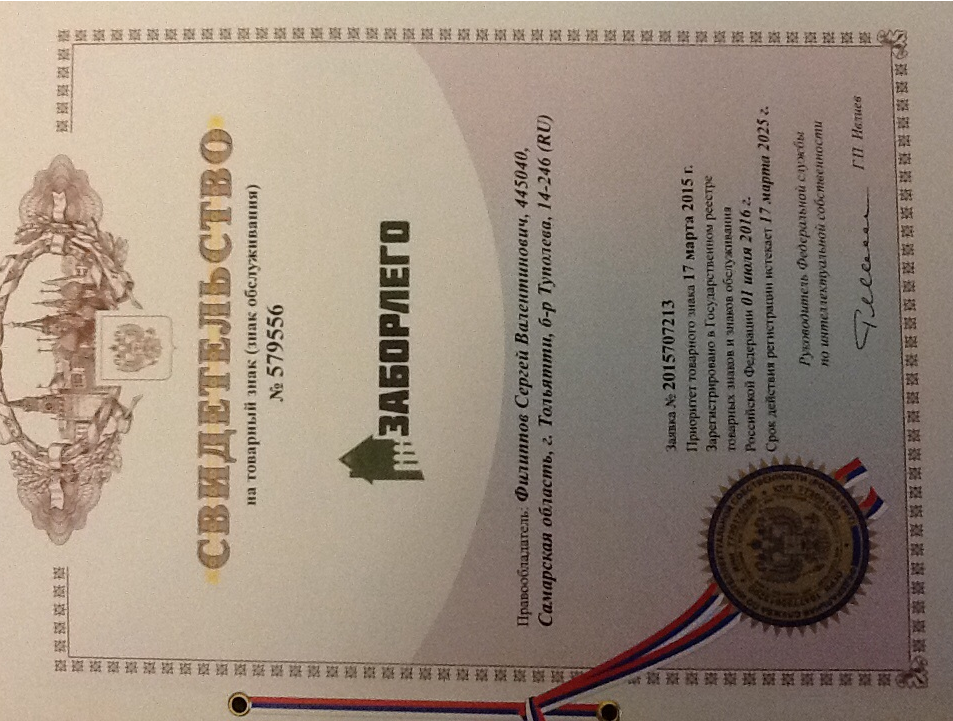А пока мы празднуем получение свидетельства на ТМ ЗАБОРЛЕГО.