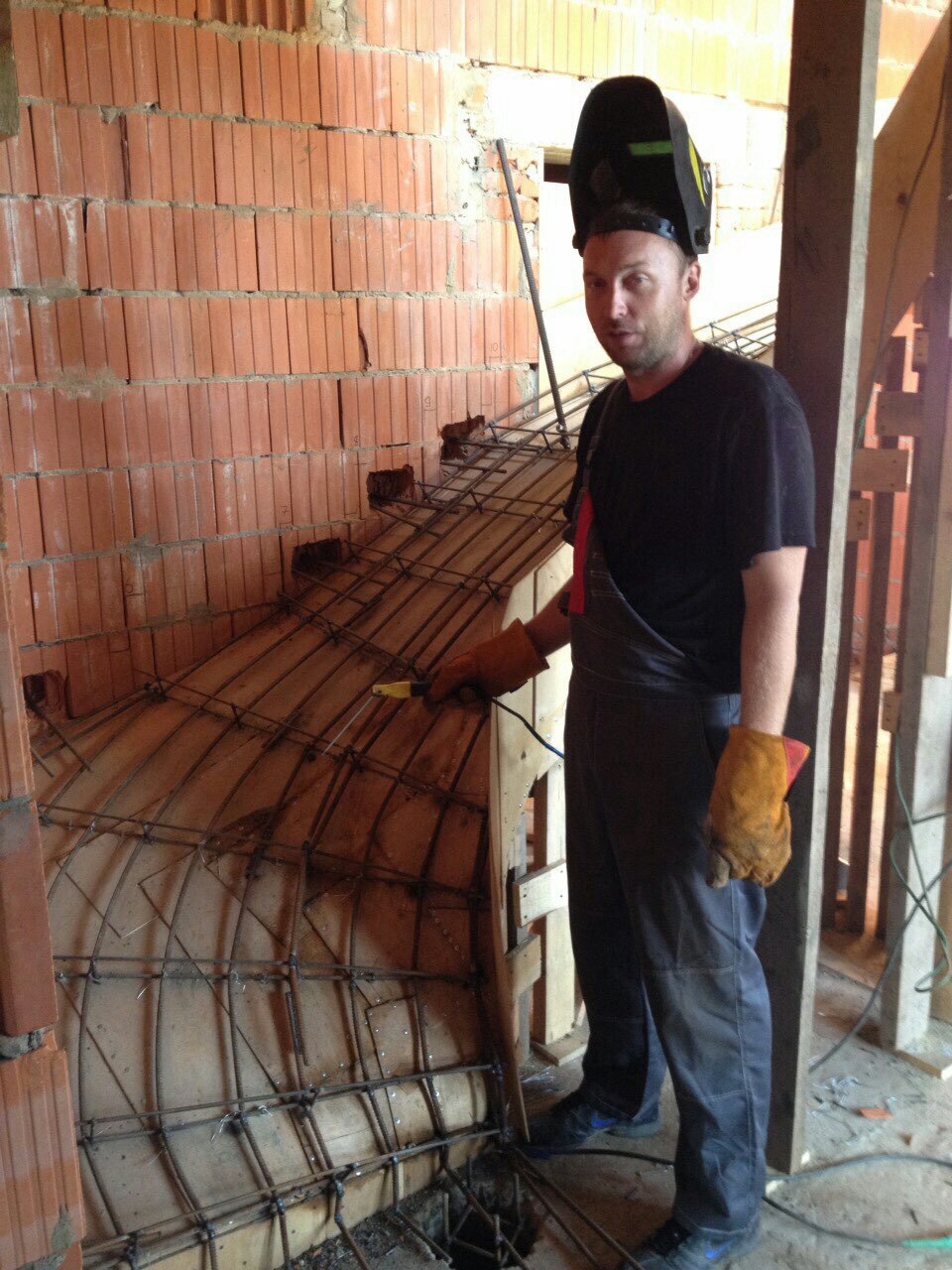 День прошел в армировании лестницы и принимая во внимание обще строительную подготовку Алексея ему все виды работ даются легко. Завтра делаем ступени и уже недалек день заливки ( укладка ) каркаса бетоном. Работа спориться по проекту выполненному непосредственно Алексеем. А темп выполнения работы и аккуратность всех действий от мастера наставника задают эталон работы при выполнении заказа.