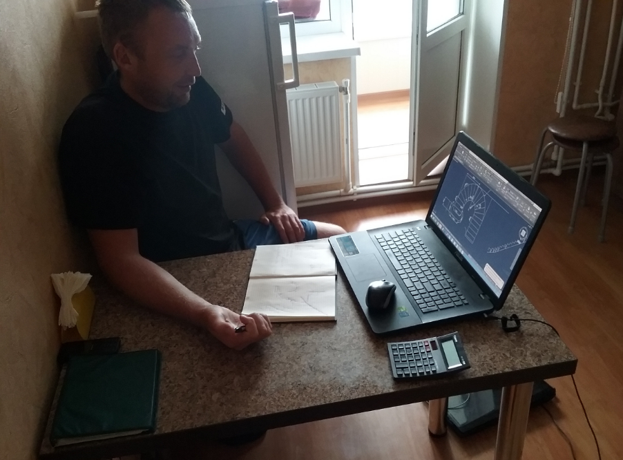 По результатам замера Алексей сделал проект лестницы который и начнем воплощать с завтрашнего дня, от логистики поставки материалов, ( определение качества закупаемых материалов, точный расчет необходимого количества, полный набор используемых материалов и механизмов )до её строительства. Большим плюсом в курсе обучения является то, что Алексей в школе дружил с геометрией и сейчас по ходу обучения врубается во все этапы проектирования и строительства.