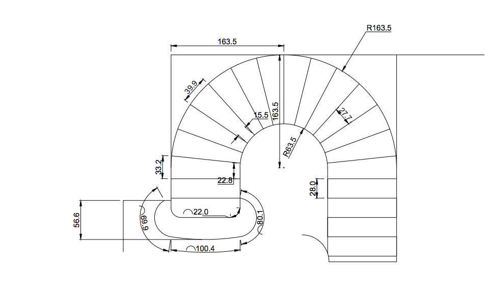 шириной 1 м. Забежна часть лестницы находится на расстоянии