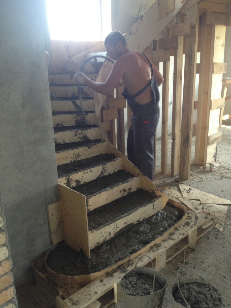 Вчера у нас с Алексеем был день укладки бетона на им же построенный каркас лестницы, вторая укладка бетона кстати за курс и опыт оперативной разгрузки смесителя с привлечением подсобных рабочих позволит Алексею без лишних проблем уже дома сдавать свои лестницы без форс мажоров. Сегодня едем по нашим бригадам в различных поселках пригорода Белгорода для знакомства с различными конфигурациями строящихся лестниц и пояснения по ходу дела особенностей их строительства. Двух одинаковых лестниц не бывает, запомните это, пусть и даже в домах построенных по одинаковому проекту. Взять даже таунхаусы в которых мы этой весной и летом строили лестницы. Одному заказчику нужен туалет под лестницей, другому необходимо показать не загроможденность пространства и т.д.