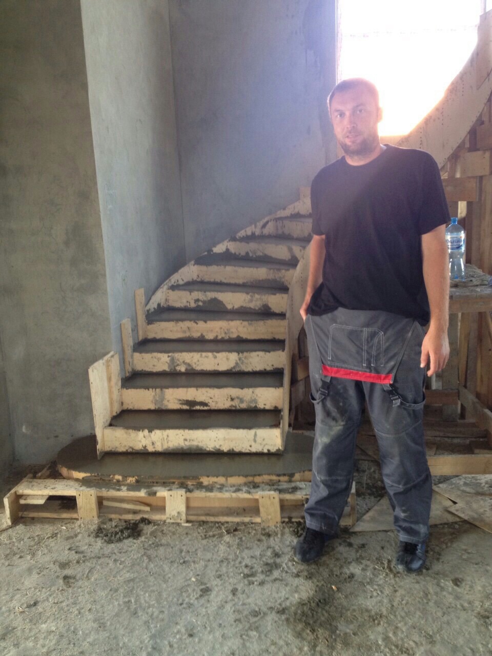 Первый день курса обучения у нашего франчайзи из Благовещенска начался со знакомством работы бригад в Белгороде по строительству лестниц. Пришлось потратить время на поиск спец одежды для Алексея, так как парень он оказался богатырского сложения. В связи с тем что разница по времени имеет более 5 часов то и Алексей немного отдохнув ринулся в бой съездив на замер к нашему заказчику, увидел общение с заказчиком и познакомился с правилом замера, что в какой последовательности происходит и какими аргументами оперировал Николай в разговоре с заказчиком. У нас же принципиальный момент взять заказ с первого посещения не откладываю подписания договора на потом. Первые дни курса, в связи со смещением последовательности этапов курса обучения ( работаем то на реальных объектах и в них бывают накладки ) мы проводим армирование лестницы на объекте в п. Таврово.