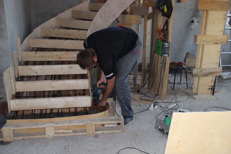 В практический курс сертификации вошли вопросы разметки будущей лестницы, строительство каркаса, армирование, укладка товарного бетона.