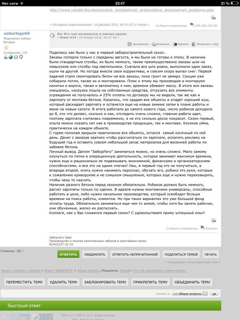 На след неделе жду на экскурсию заинтересованного партнера решившего своими глазами убедиться в реалистичности бизнеса ЗАБОРЛЕГО.