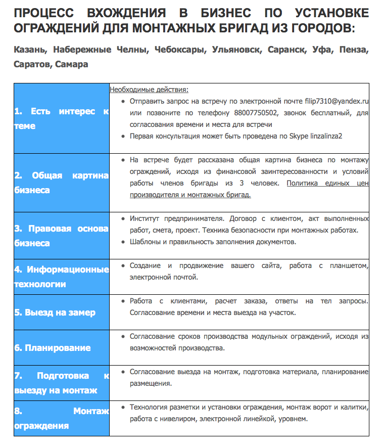 2 день вы потратите на контакт с ближайшим франчайзи и согласование сроков обучения установки забора. Два-три дня потратите на саму установку и запуск сайта с настройкой контекстной рекламы своими ресурсами или моего админа.