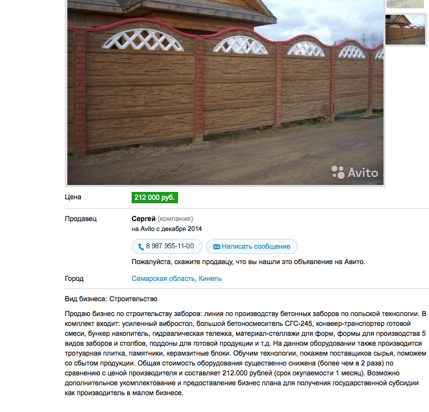 Мое предложение в следующем, если вы обладате интересной для меня технологией производства бетонных изделий, то я готов рассматривать приобретение технологии или обмен технологии производства по которой работаю сейчас с торговой маркой ЗАБОРЛЕГО. Для связи используйте мою почту filip7310@yandex.ru