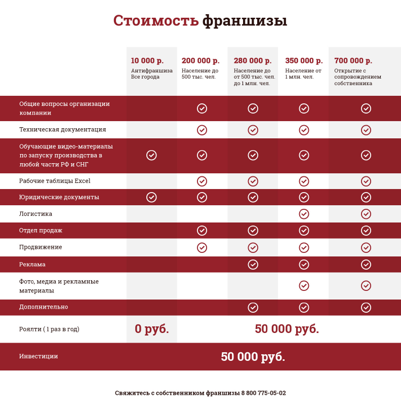 В пакете предложения идиология франчазёра базируется на росте потенциала франчайзи в регионах за счет многократного роста выполняемых монтажных работ по строительству комплексов барбекю от месяца к месяцу. Так одному партнеру реально контролировать не менее 4 бригад выполняющих заказ, не традиционные 2-4 недели, а в период 3-5 дней. И эта технологическая фишка нашего проекта является основным преимуществом нашего проекта по развитию франчайзи ТМ БарбекюШоу в России.
