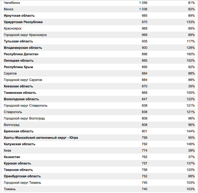 Допустим в вашем городе количество запросов ( возьмём г.Тула 787, а Белгород 908 ) разница есть, но не существенная, так как Тульскому франчайзи можно будет работать и на Московскую область. А тот рынок не сравнить.