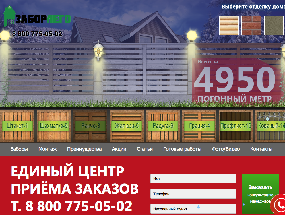 Расчет стоимости заказа производства и установки ограждения ЗАБОРЛЕГО с воротами различного типа и калиткой возможен в несколько кликов на сайте компании ,