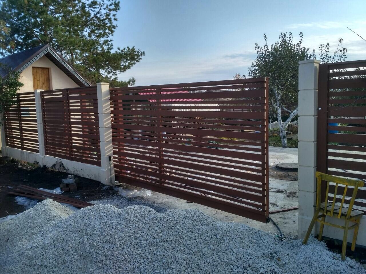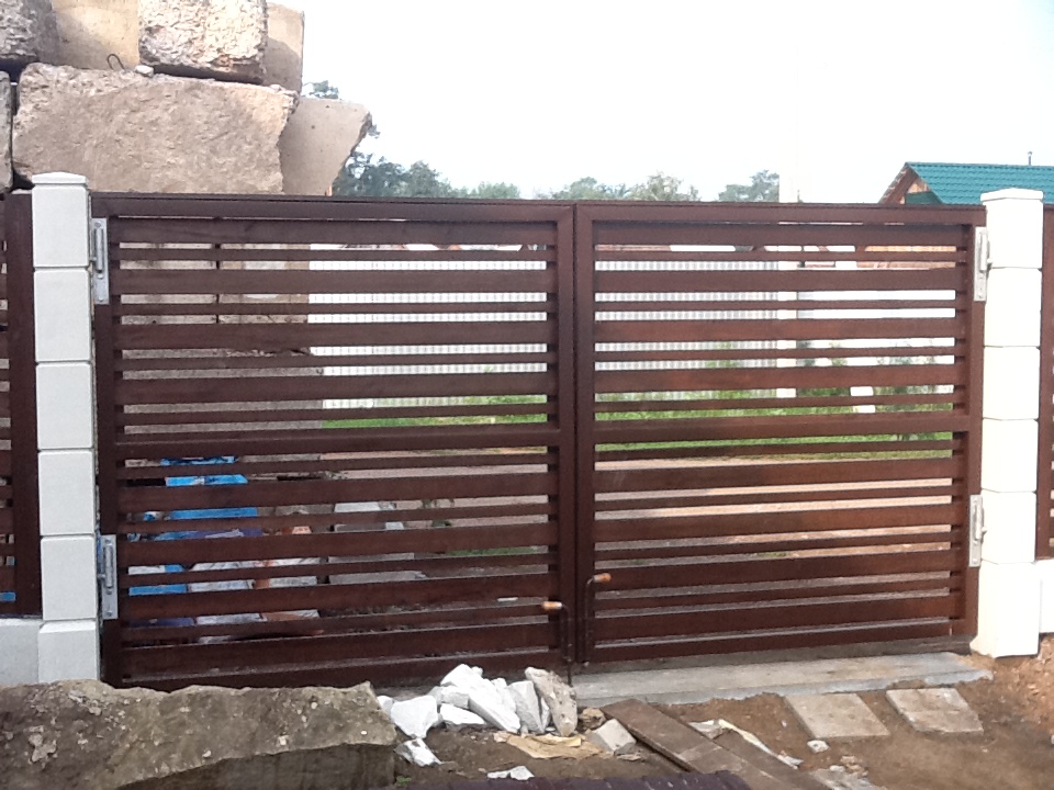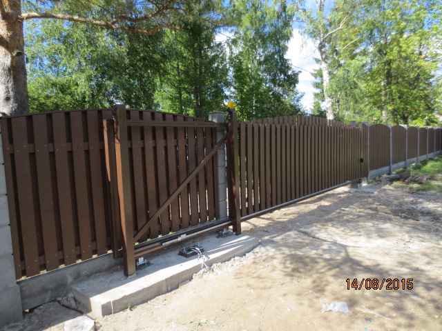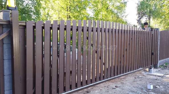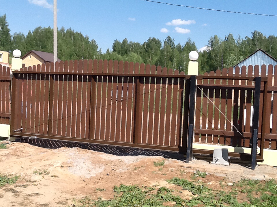 Выбор типа этих ворот обусловлен предпочтениями клиентов и ограниченностью территории для отъезда воротины откатных ворот.