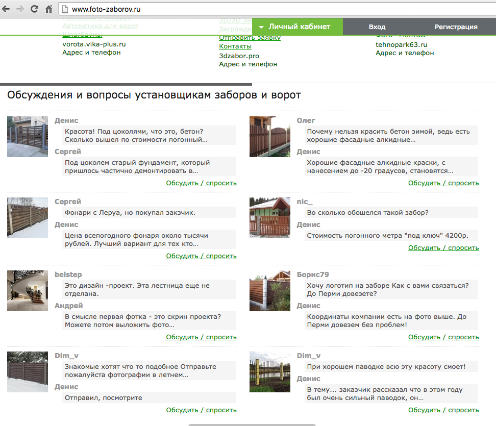 Вот сейчас зашел на главную страницу этого ресурса и подавляющее большинство фотографий было представлено партнерами торговой марки ЗАБОРЛЕГО.