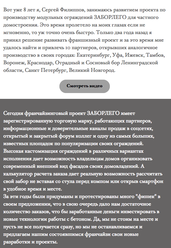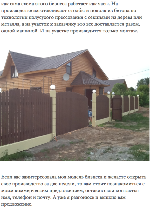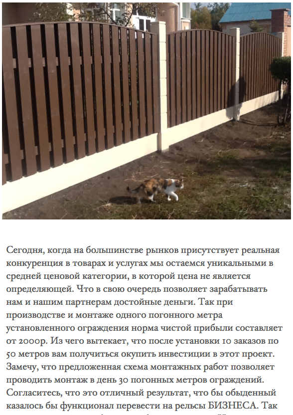 Кажды из заинтересованных франчайзи может получать от меня рассылку по теме открытия производства и проведению монтажных работ ограждений ЗАБОРЛЕГО. Пишите на мою почту filip7310@yandex.ru