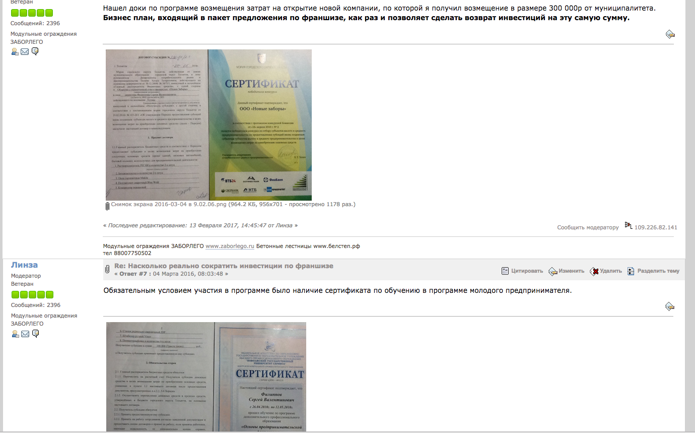 10. Познакомиться с отзывами моих франчайзи отработавших два года вы можете познакомиться здесь