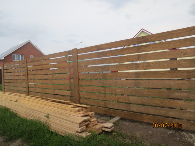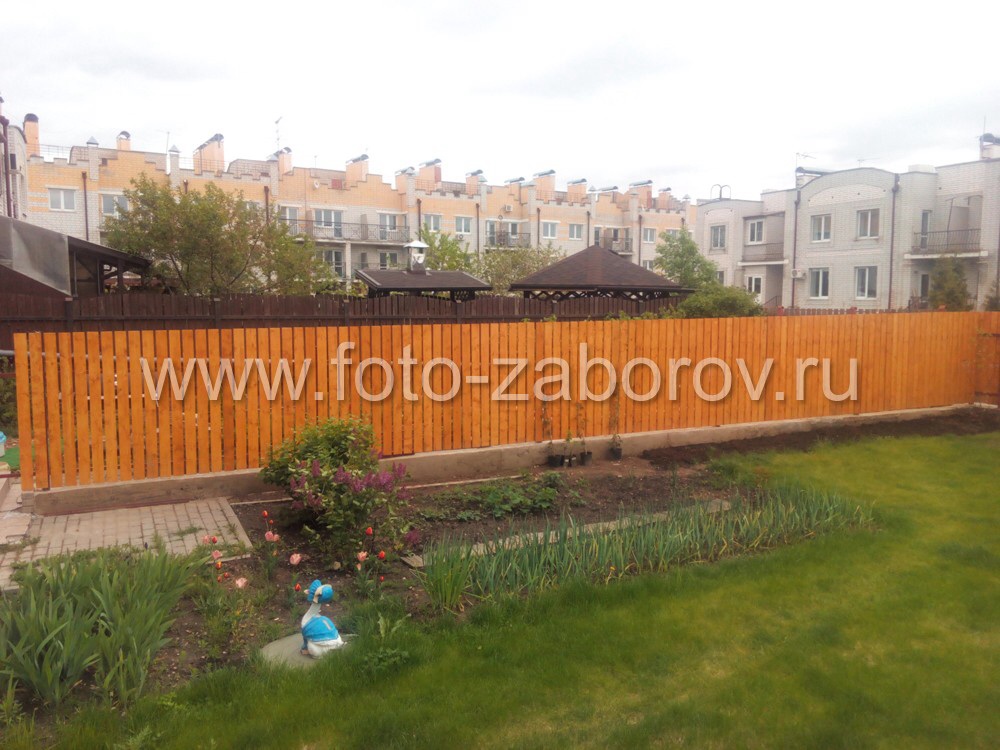 Второй забор: традиционный штакетник из доски с качественной покраской, в основе которого труба 60 на 60мм и ленточный фундамент. Стоимость погонного метра с установкой 4350р.
