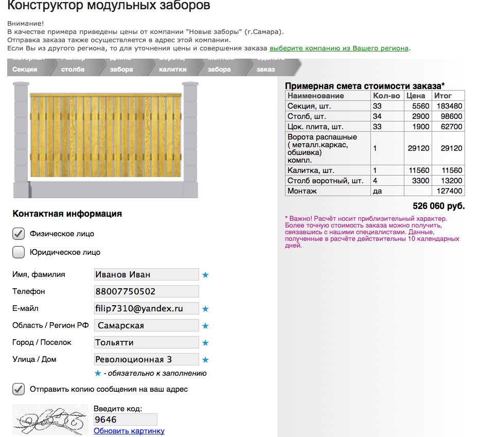 Сравнил стоимость забора по цене при равных размерах.