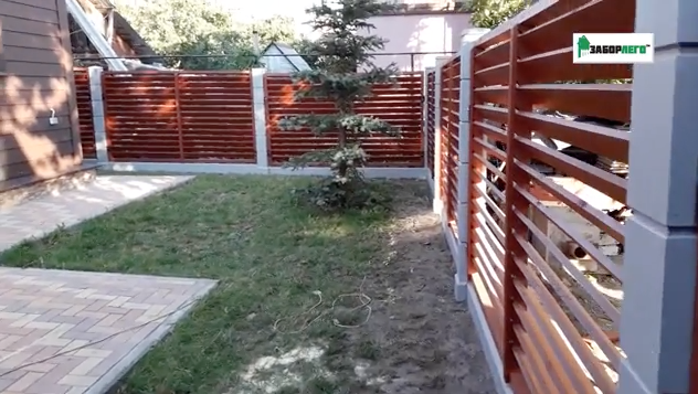 ЗАБОРЛЕГО, конструктивно состоящий из бетонного столба сечением 170мм и цокольной плиты (выполняет функцию ленточного фундамента ), имеет широкий ассортимент рисунков секций из доски камерной сушки с покраской в два слоя Тиккуриллой.