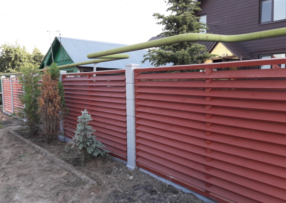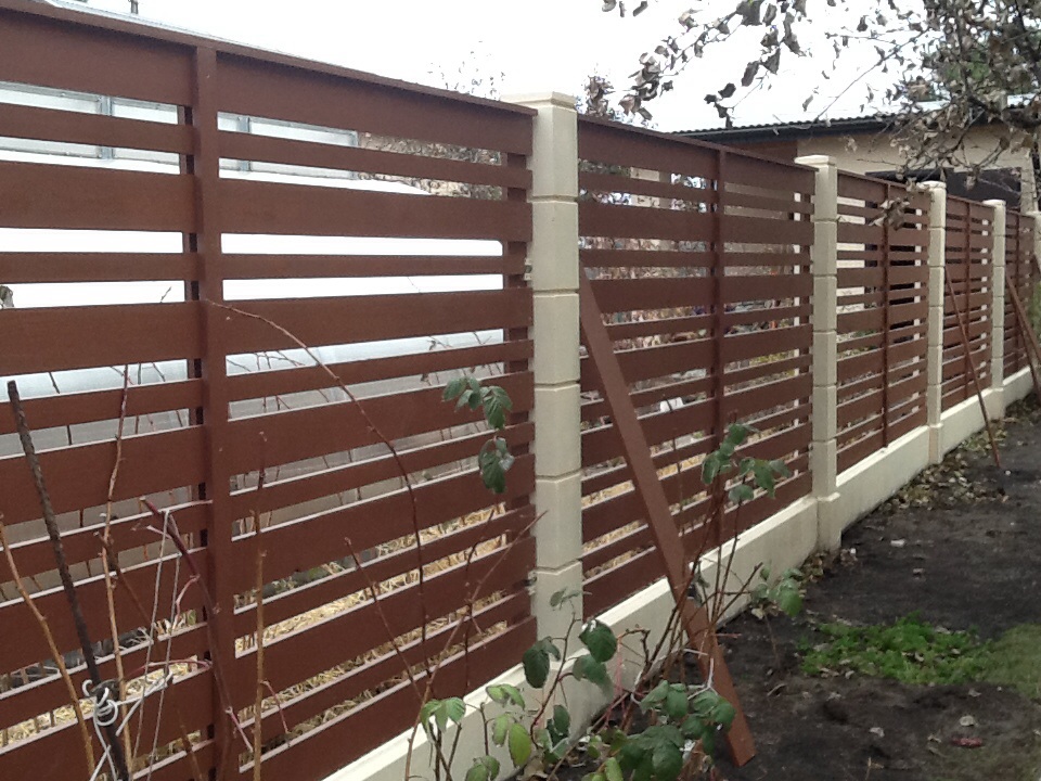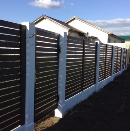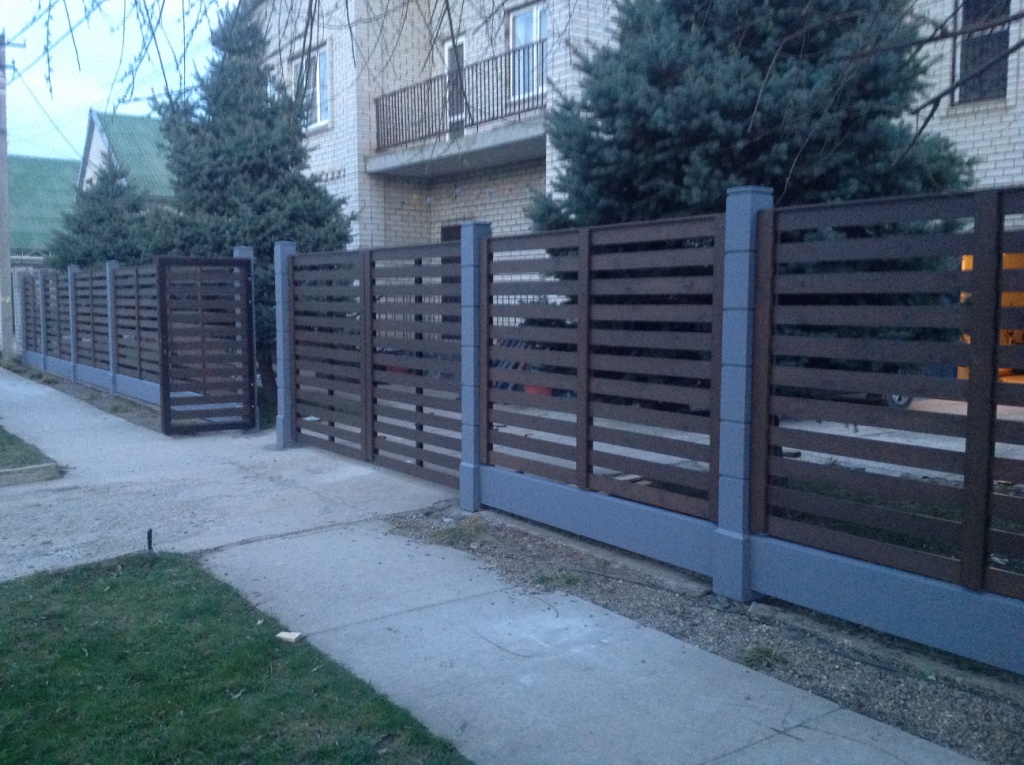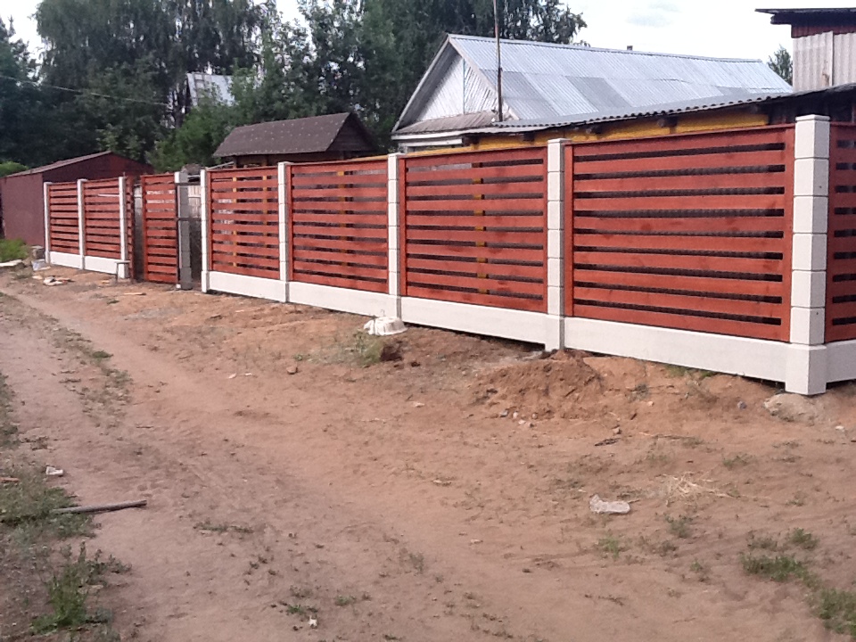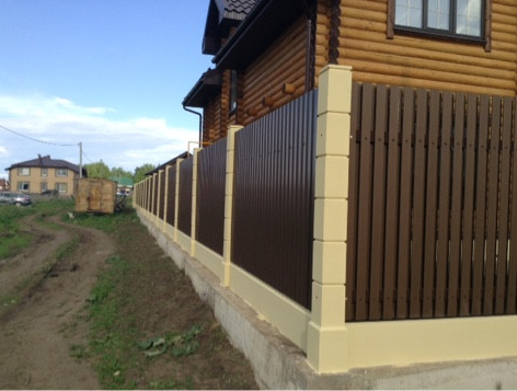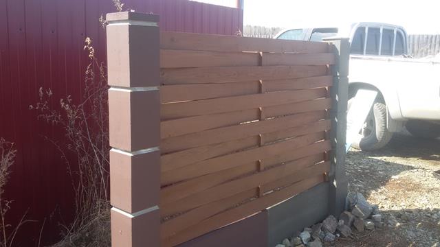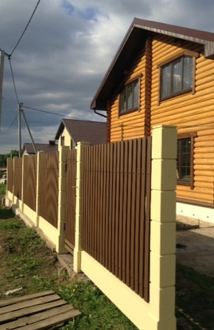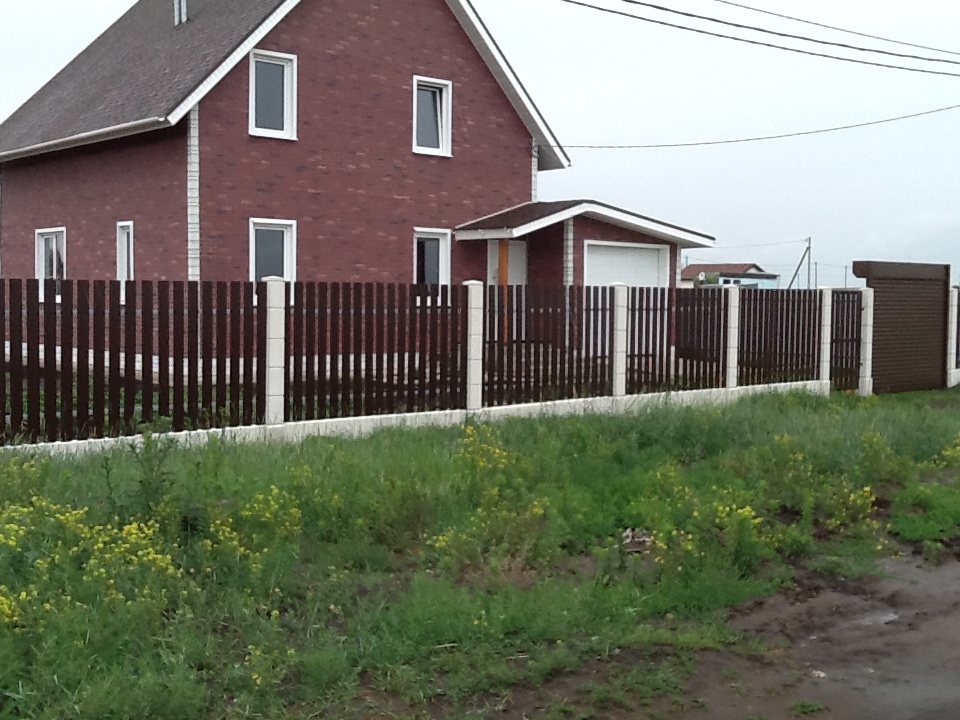 Очень красивый забор! У меня частный дом. Сейчас старый забор стоит на металлических, но уже несколько столбов прогнулись, как у многих. У знакомых на бетонных! Стоит очень давно уже никаких не видела изменений и смотрится как новый.Прекрасный забор. Точно буду ставить при первой возможности.