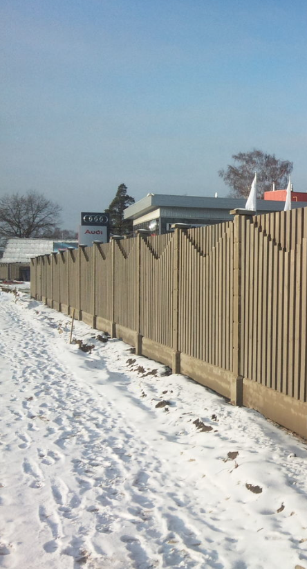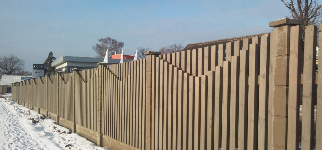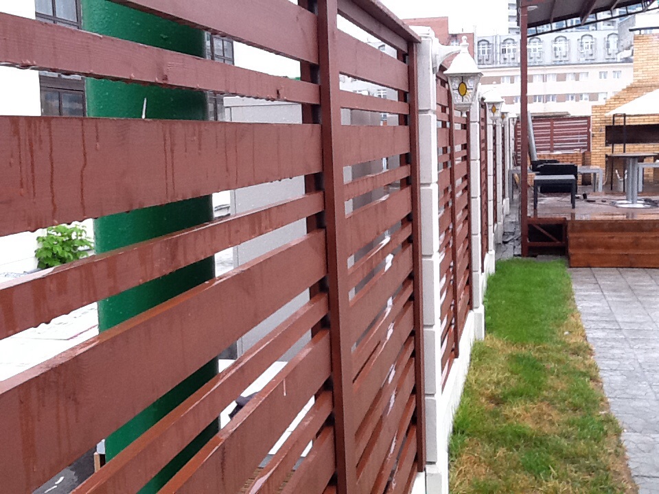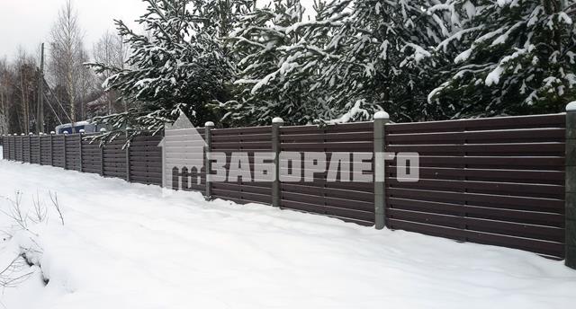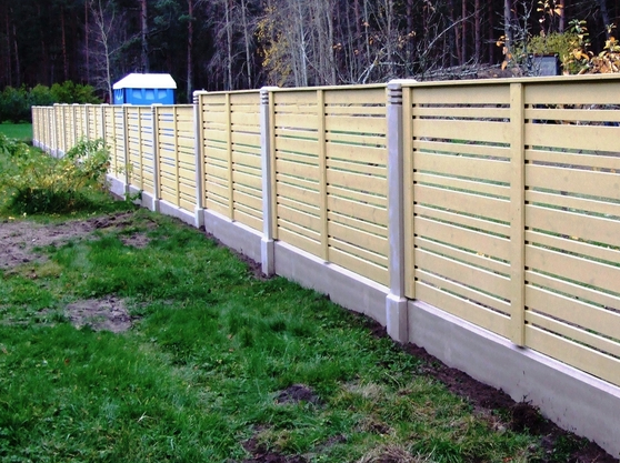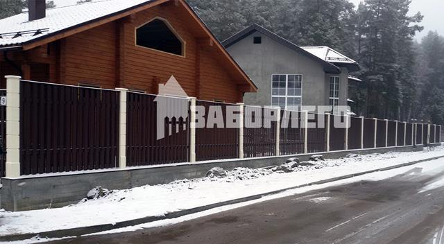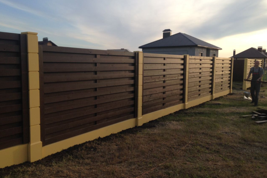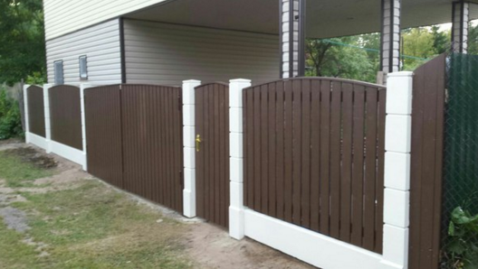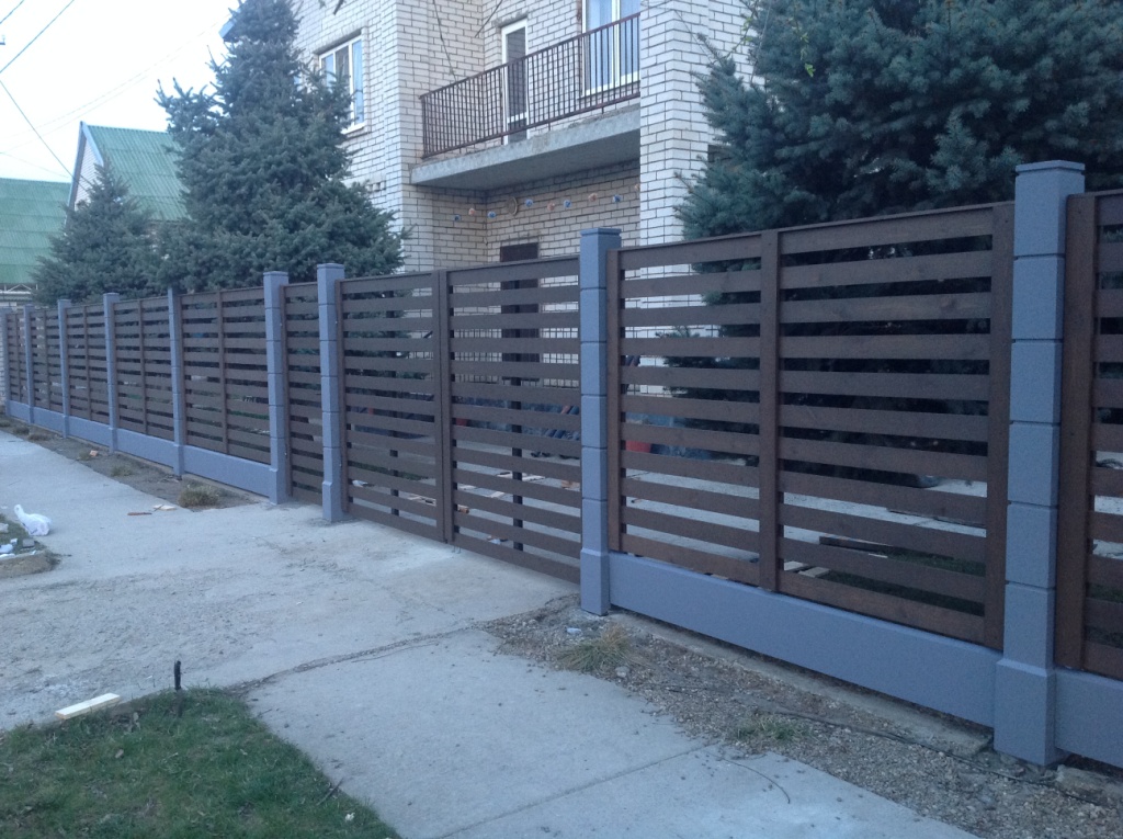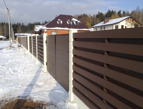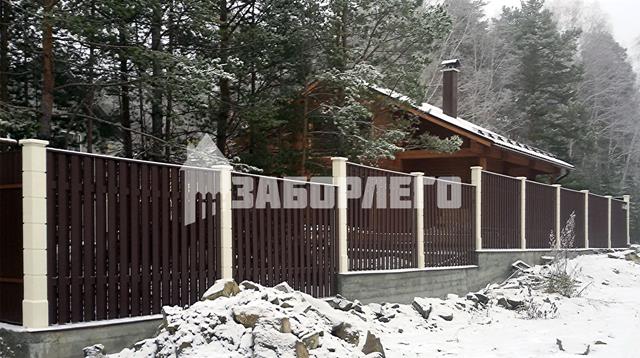 Очень красивый забор! У меня частный дом. Сейчас старый забор стоит на металлических, но уже несколько столбов прогнулись, как у многих. У знакомых на бетонных! Стоит очень давно уже никаких не видела изменений и смотрится как новый.Прекрасный забор. Точно буду ставить при первой возможности.