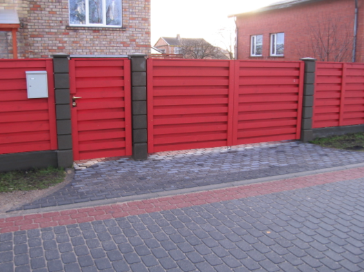 В гармонии с бетонными элементами ЗаборЛего, такой вид ограждения уже не выглядит промзоной. По сути своей "кровельный" материал, уже имеет место быть ограждением, подчеркивая индивидуальность владельца участка.