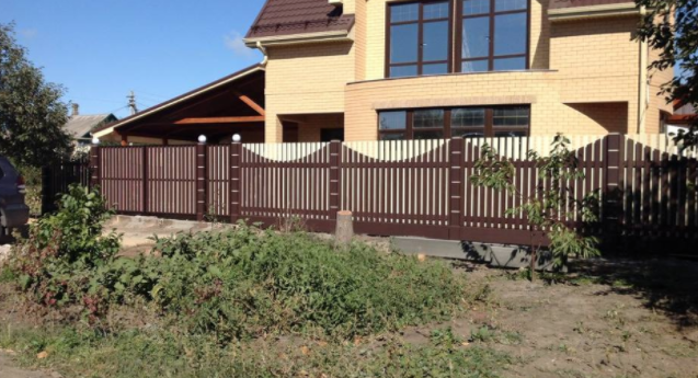 Красивый и аккуратный забор с секциями из евро штакетника. Полная версия фото на странице. Если понравилось жми нравиться и поделиться.