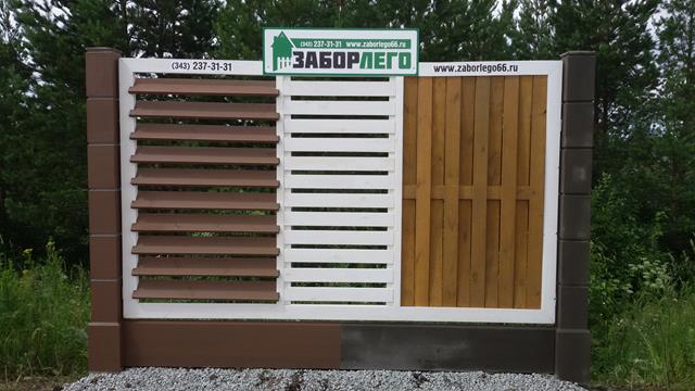 В конструктиве модульного ограждения ЗАБОРЛЕГО присутствует бетонный стол и цоколь, а так же секции из различных материалов: дерево, металл, сетчатые панели и т.д.