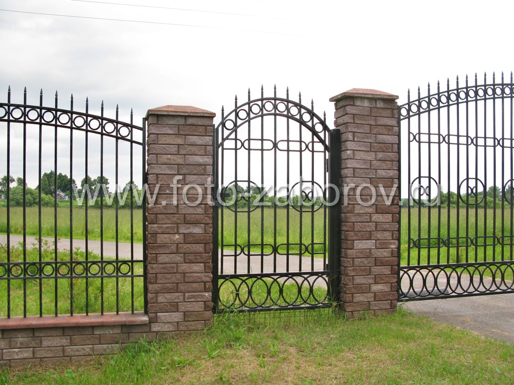 Частные земли за надёжным забором. Входная группа: изящые металлические ворота с калиткой.