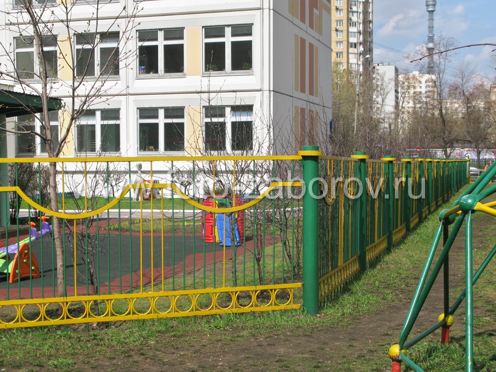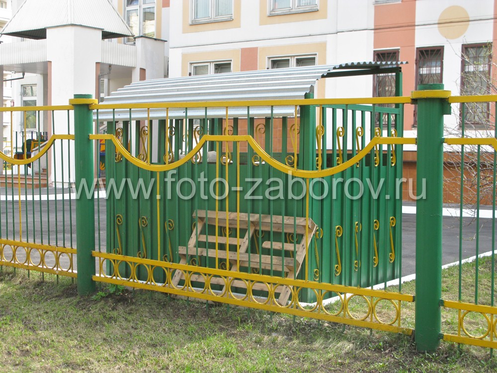 Металлический забор муниципального детсада - яркое ограждение детской сказки.