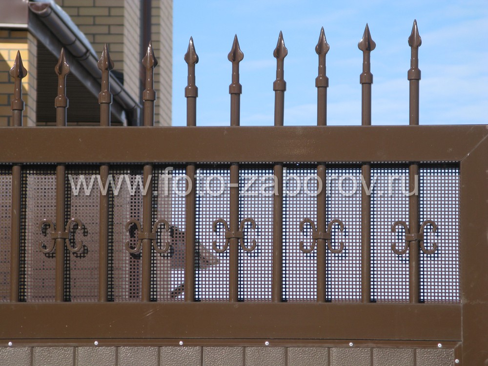 Ворота в верхней части декорированы частоколом из пик с полимерным покрытием.